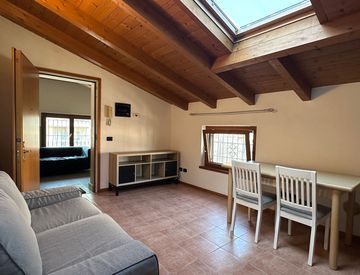*DISPONIBILE DA SUBITO* Appartamento in una palazzina di recentissima ristrutturazione, perfetto per giovani coppie e professionisti in cerca di un ambiente dinamico. Situato al secondo ed ultimo piano, questo bilocale di 45 mq offre una mansarda alta con travi a vista e un punto minimo di circa 2 metri, creando un'atmosfera calda e accogliente. L'arredo moderno e funzionale si integra perfettamente con la disposizione degli spazi: soggiorno con cucina...