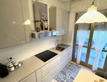 La cucina abitabile è completamente arredata in modo moderno, pronta per essere utilizzata. La camera matrimoniale, affacciata sull'interno, garantisce privacy e tranquillità. I servizi sono stati completamente ristrutturati e dotati di un box doccia elegante. Non dimenticare la comoda cantina inclusa, ideale per riporre oggetti e attrezzature.