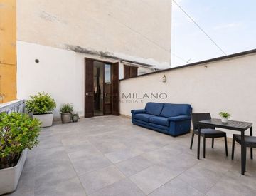 Il vero punto di forza della proprietà è lo splendido spazio esterno: un terrazzo di circa 25 mq, con accesso diretto dalla camera, perfetto per momenti di relax, cene all’aperto o per creare una vera e propria oasi verde in città. Sul fondo del terrazzo si trova una piccola parte verandata, ideale come zona studio, lavanderia o spazio hobby. L’affaccio interno garantisce inoltre tranquillità e silenzio, pur trovandosi in una via vivace.