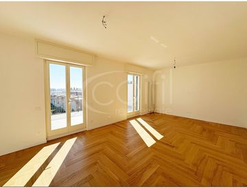 La distribuzione: ingresso, soggiorno doppio con accesso diretto al terrazzo, cucina, due camere matrimoniali, doppi servizi, comodo ripostiglio/lavanderia.