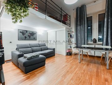 INTERNO: accesso su zona open space molto luminosa con cucina a vista e ampio bagno con doccia finestrato. Esposizione angolare con tre finestre. Scala interna per accedere alla zona notte soppalcata. Armadiature su misura in ogni angolo della casa per sfruttare tutti gli spazi. Aria condizionata, riscaldamento autonomo controllato con app, porta blindata.