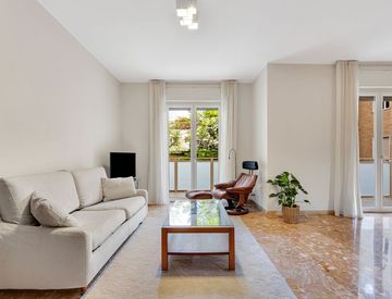 Al terzo piano del corpo interno. molto silenzioso, di una residenza signorile, ampio bIlocale elegantemente arredato composto da: ingresso, soggiorno doppio con zona pranzo dedicata, corridoio, cucina abitabile, bagno e camera da letto. Presenti tre ampie balconate con affaccio su area verde e accesso dal soggiorno, dalla camera e dalla cucina. Aria condizionata. Possibilita' box. Canone € 2.500 al mese piu' spese.