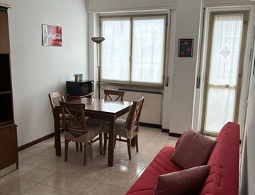 L’appartamento si apre su un comodo ingresso e offre una spaziosa camera da letto, un bagno, un luminoso soggiorno con divano letto, un pratico cucinotto separato e un balcone.