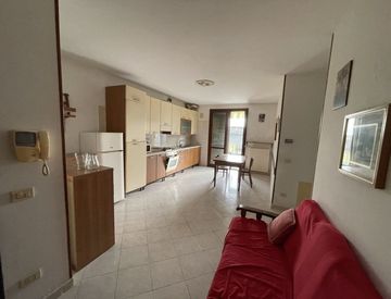 La zona giorno è costituita da un unico ambiente, soggiorno-cucina, reso particolarmente luminoso grazie all'esposizione e all'apertura verso l'esterno che conduce al balcone.