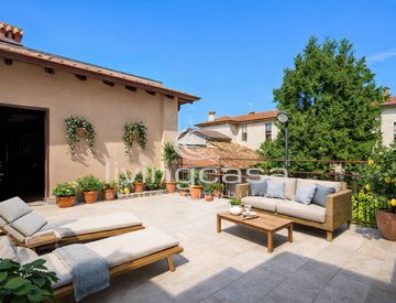 Da questo livello si accede anche a un terrazzo capace di accogliere un grande tavolo, piante e momenti all’aperto, collegato a un ulteriore locale di servizio.