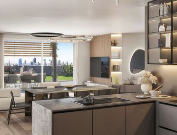 Il trilocale, situato al primo piano, combina comfort, luminosità e un grande terrazzo vivibile che valorizza l’intera abitazione. La zona giorno è ampia e moderna, con soggiorno e cucina a vista, affacciati direttamente sul terrazzo, uno spazio esterno perfetto per pranzi all’aperto, relax e momenti di convivialità.