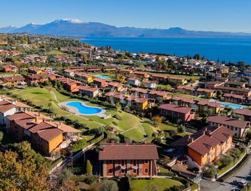 Nel prestigioso residence con piscina Gardasole 1, nel cuore di Padenghe sul Garda, proponiamo un elegante trilocale al piano terra con giardino privato molto curato e gradevole vista lago.