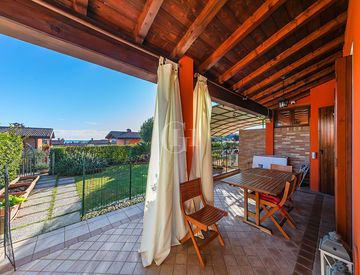 L’ingresso si apre su una luminosissima zona giorno con cucina a vista, caratterizzata da un’ottima esposizione e da un flusso naturale verso l’esterno. La zona living si collega direttamente al grande portico coperto, spazio ideale per pranzi all’aperto, relax o momenti conviviali, protetto e godibile in ogni stagione.