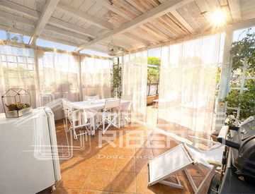 L'abitazione accoglie con un delizioso patio d'ingresso che introduce a un contesto riservato e curato, mentre l'ampio terrazzo privato rappresenta un autentico valore aggiunto, perfetto per vivere appieno gli spazi esterni in ogni stagione.