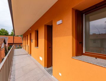 Questo bilocale al primo ed ultimo piano, con due accessi di cui uno esterno ed indipendente, presenta due ampi terrazzi vivibili in ogni stagione, ambedue affacciati sulla corte interna.
