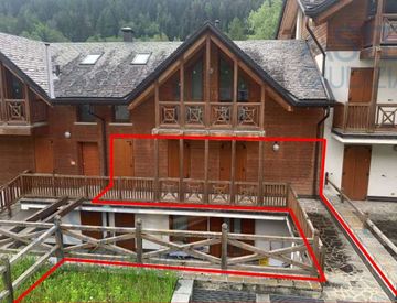 Piena proprietà in comune di Ponte di Legno (BS) – via Ettore Calvelli, 56-58-64 trattasi di appartamento posto al piano primo con giardino esclusivo oltre a cantina al piano terra ed autorimessa al piano interrato. L'appartamento è composto da soggiorno/cucina, bagno, una camera, disbrigo e due balconi, oltre a giardino sullo stello livello dell'appartamento, sopra le cantine.
