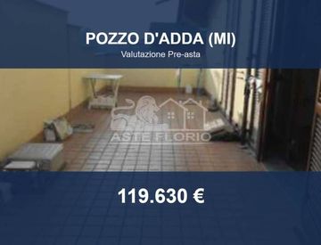 Appartamento in asta a Pozzo d’Adda (MI) – Via Cascina Cavallasco s. n. c. Appartamento in asta situato in via Cascina Cavallasco nel comune di Pozzo d'Adda. L'immobile fa parte di un complesso residenziale. Superficie e distribuzione interna: Appartamento di 97 mq al piano secondo, composto da tre locali con angolo cucina oltre servizi e terrazzo. Cantina al piano interrato. Caratteristiche e dotazioni: L'appartamento è dotato di riscaldamento a...