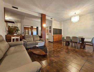 -Soggiorno luminoso con sala da pranzo e porte-finestre che affacciano sul balcone perimetrale