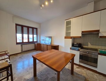 L’appartamento si apre su un luminoso soggiorno con cucina a vista. La zona notte comprende una spaziosa camera matrimoniale, un pratico studio perfetto per lo smart working o come piccola stanza hobby e un bagno ben distribuito.