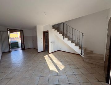 CIGNONE DI CORTE DE CORTESI (a 5 Km da Quinzano d'Oglio) In tranquillo contesto residenziale, in fabbricato dei primi anni 2000 appartamento trilocale composto da ingresso indipendente tramite giardino privato frontale, al piano terra troviamo un luminoso soggiorno con angolo cottura, con accesso diretto alla loggia e bagno di servizio. Al piano superiore si sviluppa la zona notte con due camere da letto, balcone, disimpegno e bangno con vasca e doccia....