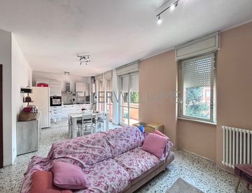 L’appartamento di circa 130 mq è composto da un ingresso sullo spazioso soggiorno con cucina a vista e tripla porta-finestra per l'uscita sul balcone, due ampie camere singole, una delle quali ad oggi adibita a lavanderia, due altrettanto ampie camere matrimoniali e due bagni completi e finestrati.