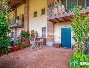 Tempocasa - San Giuliano M. se propone in vendita splendida soluzione di tre locali con annesso porticato e giardino di proprietà, immersa in un affascinante contesto residenziale denominato "La Corte Grande del Castello" tra i più esclusivi di Zivido e di San Giuliano Milanese. L'immobile si trova al piano terra ed è composto da: ingresso privato dal cortile piastrellato di proprietà con annesso porticato, porta d'ingresso blindata, ampia zona giorno...