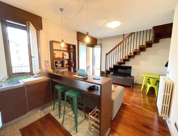 L'ingresso apre ad una zona giorno luminosa con cucina a vista, dalla quale si accede a un pratico terrazzino, ideale per momenti di relax all'aperto. Sullo stesso livello si trova un bagno con doccia.