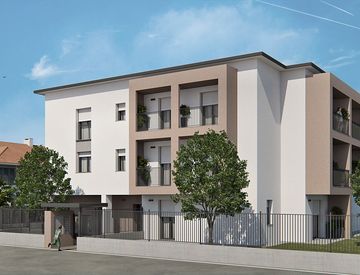 In piccola palazzina di tre piani fuori terra, comodo con l’arteria Autostradale e a 15 min a piedi dalla stazione ferroviaria, appartamenti di due e tre locali con o giardino o terrazzi.