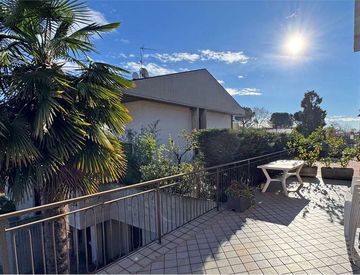 Centrale, senza spese condominiali, 120 mq attualmente adibito a trilocale posto al primo di 2 piani cosi meglio descritto; ingresso con comodo disimpegno, ampio e luminoso salone dotato di camino e balcone, generosa cucina abitabile con affaccio su esclusivo terrazzo da 90 mq, disimpegno notte con 2 camere letto e doppi servizi di cui uno ad uso privato per la matrimoniale, inoltre dispone di comoda cantina al piano interrato e doppio posto auto...