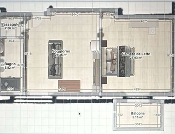 Gli ambienti ben distribuiti e luminosi si compongono da zona living con cucina a vista, camera matrimoniale con balcone e bagno finestrato.