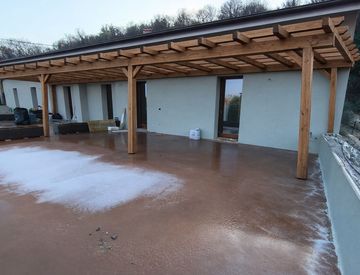 -terrazza esclusiva con pergolato in legno, dalle importanti dimensioni