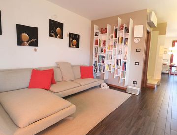 Stezzano recente trilocale del 2007 ma mai abitato sino al 2012, l'appartamento si trova al primo ed ultimo piano con zona notte mansardata abitabile, primo piano zona giorno con soggiorno, cucina abitabile, ripostiglio, un bagno e due ampi balconi, zona notte mansardata con abitabilità con due comode camere di cui la matrimoniale con due cabine armadio, secondo bagno, ed altri due balconi ampi, l'immobile si presenta in ottimo stato d'uso, completo...