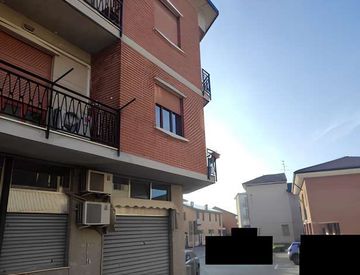 Quota di 1/1 di piena proprietà di appartamento di mq. 112,97. Appartamento ad uso abitazione posto al piano primo composto da ingresso, cucina, soggiorno, corridoio zona notte, due camere, un bagno, due terrazzini. Box singolo, cantina