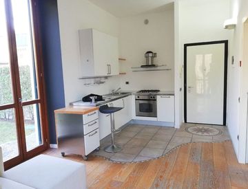 Disponibile dal 10 maggio 2026, contratto transitorio 18 mesi (rinnovabile) - In locazione al piano terra di Villa Consonni, elegante e tranquillo bilocale completamente arredato così composto: ingresso, luminoso soggiorno con angolo cottura, disimpegno, una camera matrimoniale, un bagno con doccia idromassaggio, oltre ad un box singolo e una cantina. L'appartamento è termoautonomo con minime spese condominiali. Completano la proprietà un giardino...
