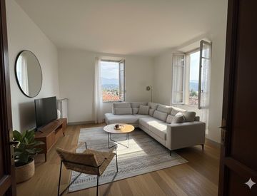 Situato in una casa d’epoca di sole quattro unità, l’immobile regala un’atmosfera intima e raffinata, impreziosita da dettagli originali come pavimenti in legno, piastrelle storiche e soffitti alti. Dalle sue finestre, lo sguardo si apre su un panorama unico che abbraccia il blu profondo del lago e le cime delle montagne circostanti.