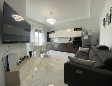 È accessoriato con porte moderne bianche e serramenti in PVC con doppi vetri e tapparelle elettriche, pavimenti in gres porcellanato effetto marmo in tutta la casa e cartongesso con illuminazione a faretti nella zona giorno.