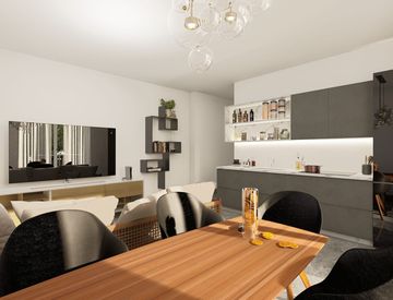 •Luminoso soggiorno open-space con cucina a vista