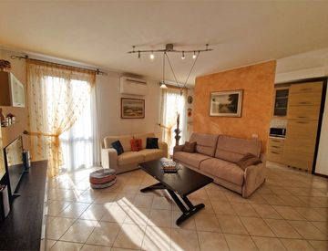 All'ingresso ci accoglie un luminoso soggiorno, arredato con gusto e dotato di TV e divano letto matrimoniale, perfetto per accogliere amici o ospiti; il comfort è garantito dal nuovo impianto di aria condizionata appena installato.