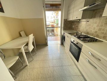 ampio ingresso con armadio a muro, cucina abitabile e soggiorno serviti da balcone, disimpegno, camera da letto matrimoniale e bagno. Aria condizionata.
