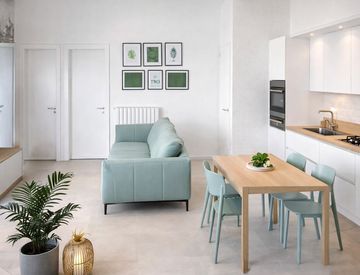 L’ingresso si apre direttamente sulla zona giorno, un ambiente unico con soggiorno e cucina a vista, ben sfruttabile, perfetto per la vita quotidiana e per chi ama avere uno spazio conviviale senza metri sprecati.