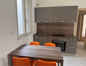 Affittiamo appartamento trilocale arredato. Composto da ingresso su soggiorno con cucina a vista, disimpegno, due camere da letto, un servizio, terrazza coperta e cantina.
