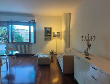 L’elegante appartamento, di circa 135 mq, si apre sull’ampio e luminoso salone finestrato