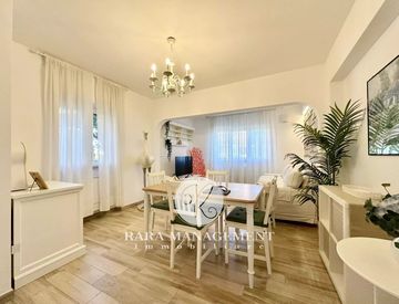 Appena entrati, si percepisce subito il livello dell'appartamento: zona giorno finemente arredata, che da spazio ad una zona relax intrattenimento con divani e tv, dall'area ristorno con tavolo e sedie.