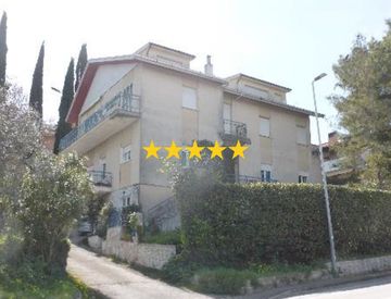 Appartamento al piano primo, con garage e fondaci al piano terra, facente parte di un edificio bifamiliare di civile abitazione. L'appartamento ha una superficie di mq 148 ca. con balconi di mq 55,55 ca. I fondaci e il garage hanno superficie complessiva di mq 122,93 ca. L’edificio, di cui è parte l'appartamento, si eleva per n. 3 piani fuori terra ed è sito nella zona periferica verso est del centro storico del comune di Fermo. - Pompeiana
