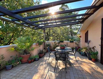 L'alloggio, inoltre, è dotato di impianto di aria condizionata, impianto allarme e irrigazione automatica.