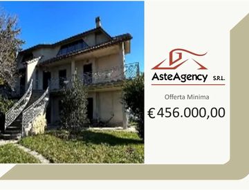 interrato, cucina, disimpegno wc e camera al piano terra, soggiorno cucina, due camere bagno, disimpegni e balcone al piano primo, locali soffitte al piano secondo. Più terreno agricolo di 40.877 mq.