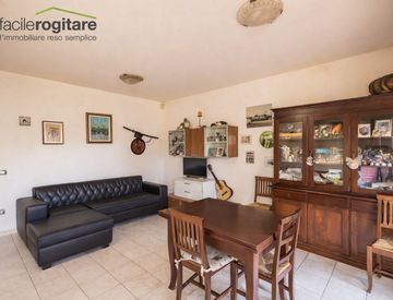 L'interno dell'abitazione è ben distribuito e luminoso, con un ampio soggiorno che accoglie la zona living. La cucina, separata dal soggiorno, è dotata di un comodo cucinotto e di una portafinestra che conduce direttamente alla corte di ingresso, permettendo un facile accesso all'esterno. La zona notte è composta da una camera matrimoniale, una camera singola e un bagno, tutti ben dimensionati per offrire il massimo comfort.