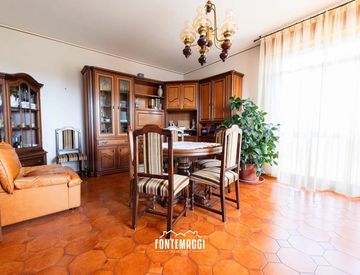 L'appartamento è composto da ingresso, cucina con sala da pranzo e accesso ad un balcone dal quale si possono ammirare le colline circostanti e, durante l'estate, anche il mare. Un ampio soggiorno luminoso con accesso diretto ad un altro balcone con una splendida vista sul centro storico di Orciano, disimpegno, tre spaziose camere matrimoniali, una camera singola e un bagno finestrato.