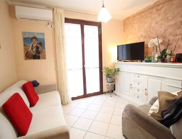 L'appartamento principale è composto da cucina con affaccio a loggia e al primo scoperto privato, disimpegno, camera da letto, con accesso diretto al secondo spazioso giardino privato pavimentato è bagno. Attualmente nella camera i proprietari hanno realizzato il loro soggiorno per poter godere al meglio degli scoperti privati.
