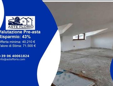 Riferimento: 4517231 Piazza Molise, 11, 86100 Campobasso CB, Italia, 86100 Campobasso Campobasso Lotto: LOTTO UNICO LOTTO UNICO: piena ed esclusiva proprietà di mansarda posta al terzo e ultimo piano dell’edificio, ricavata dal recupero del sottotetto, sita nel Comune di Campobasso (CB) alla Piazza Molise 11/D. Catasto Fabbricati al Foglio 57 – Particella 1697 – Sub. 102 – Categoria F/1. Consistenza: 1 vano Data di vendita: 28/04/2026 12:00 Offerta...