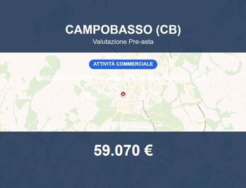 Locale commerciale in asta a Campobasso (CB) – Contrada Colle delle Api snc Locale commerciale ubicato in Campobasso, Contrada Colle delle Api snc. L'immobile si trova in una zona periferica del comune. Superficie e distribuzione interna Il locale commerciale ha una superficie di 147 mq e si sviluppa al piano terra. E' composto da un unico vano. Caratteristiche e dotazioni Contesto e collegamenti La zona è periferica e necessita di essere rivalutata....
