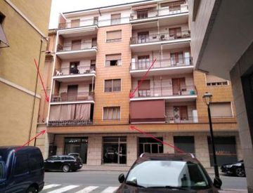 In asta appartamento posto al piano primo, in condominio dotato di ascensore e composto da: un ingresso, tinello con cucinino, soggiorno, bagno, ripostiglio, due camere e due terrazzi.