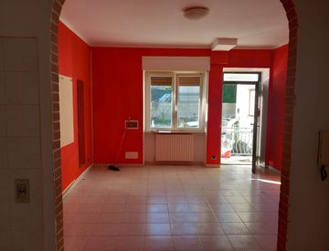 L'appartamento è sito al piano terreno di una piccola palazzina di soli due piani e composta da poche unità. L'ingresso dal balcone di pertinenza, attraverso una porta blindata, è su ampio soggiorno con a vista la cucina abitabile.