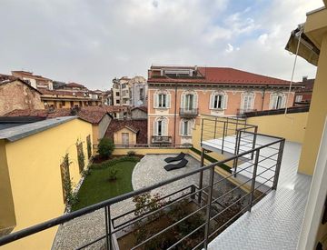 La disposizione interna si sviluppa con un ingresso living su un grande salone dove trova posto la zona cucina già arredata, ampie porte finestre che conducono sul balcone e il terrazzo vivibile. Proseguendo si entra nella zona notte dove troviamo due camere di cui una con affaccio sul Corso Alfieri, una bagno con doccia e il secondo con vasca idromassaggio....