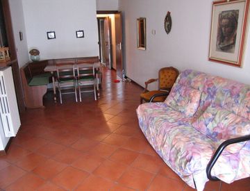 L'appartamento è composto da ingresso, un ampio soggiorno con divano letto, una piccola cucina, 2 camere da letto e un bagno.